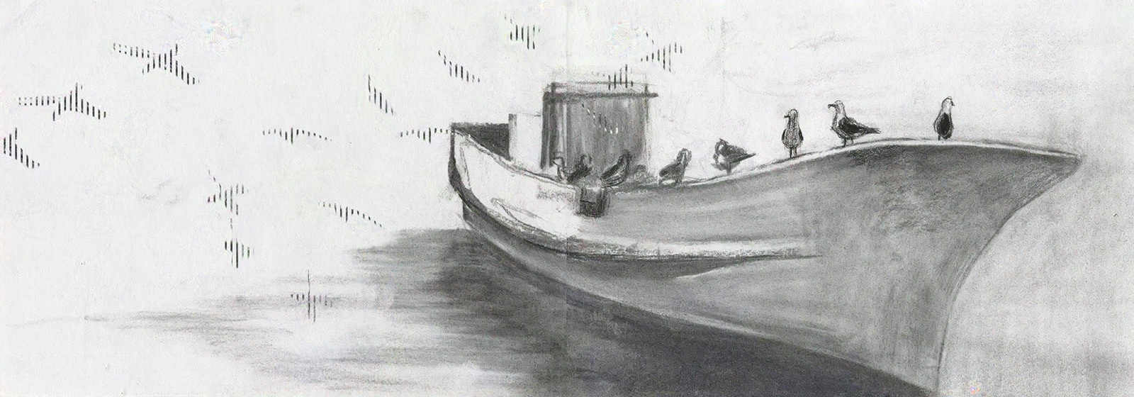 多くの渡り鳥は、毎年ほぼ同じ経路で停留地を巡回している。であるのに彼らは、季節ごとに到着する場所を、初めて訪れる新しい場所として認識するように変容するという古い説がある。そのことを知らずにウミネコを観察していて、群れの一羽一羽が全く別のそれぞれの時空を過ごしているように見えること、羽ばたいてどこかへ降り立つたびにまるで新しい土地に降り立ったかのように見えることが、とても不思議だった。彼らは、時間や空間をどのように知覚しているのだろうか。ウミネコ一羽一羽が飛び立ち次に立ち止まる場所で、それぞれが未知の新しい惑星に降り立っているような感覚を描いた。